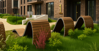 зелёное пространство, которое усиливает ценность архитектуры и объекта в целом